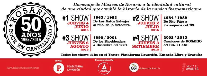 El sábado 20 y domingo 21 de febrero en el Anfiteatro Municipal se llevó a cabo "Rosario: 50 años de Rock en Castellano". Un espectáculo único que durante 2 noches consecutivas contó en el escenario con más de 130 artistas de Rosario y la región tocando en vivo (y de manera exclusiva) canciones de autores de la ciudad de las últimas 5 décadas.